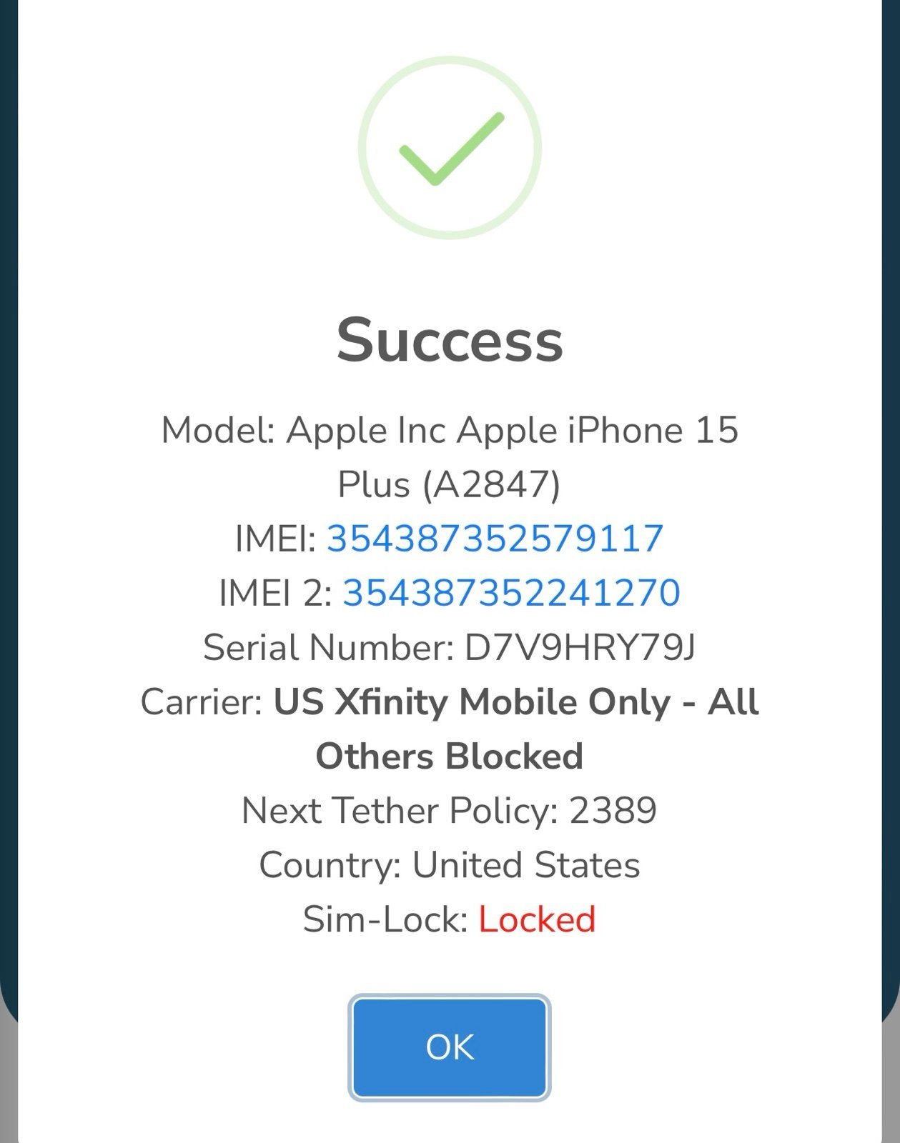 Apple iPhone 15 Plus 256GB Green Xfinity Only Like New Clean No Box Or Charger. No iCloud No Account. Final Sale No Returns
